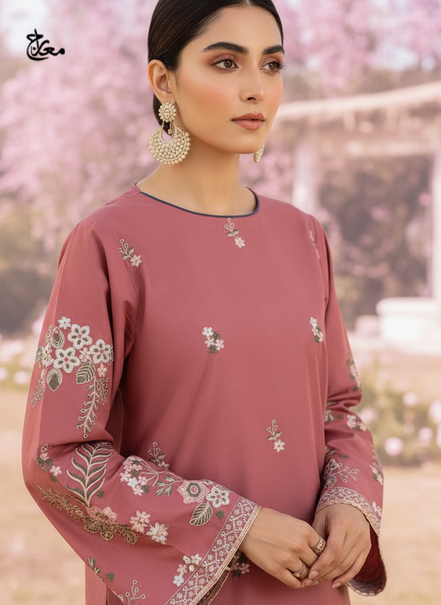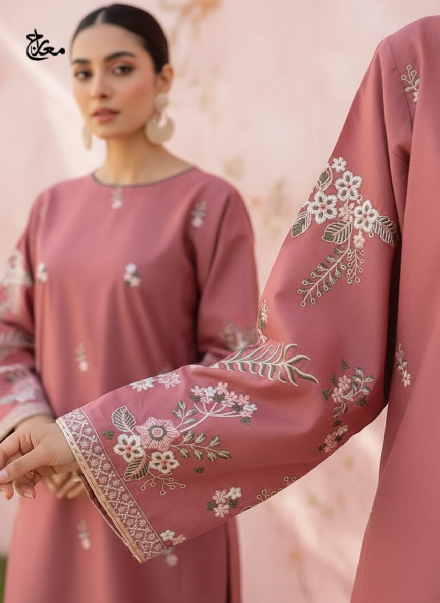 The MEHAK EMBROIDERY 2PC (FARSHI) blends classic tailoring with seasonal comfort. Made from premium stone lilen fabric, this set includes: