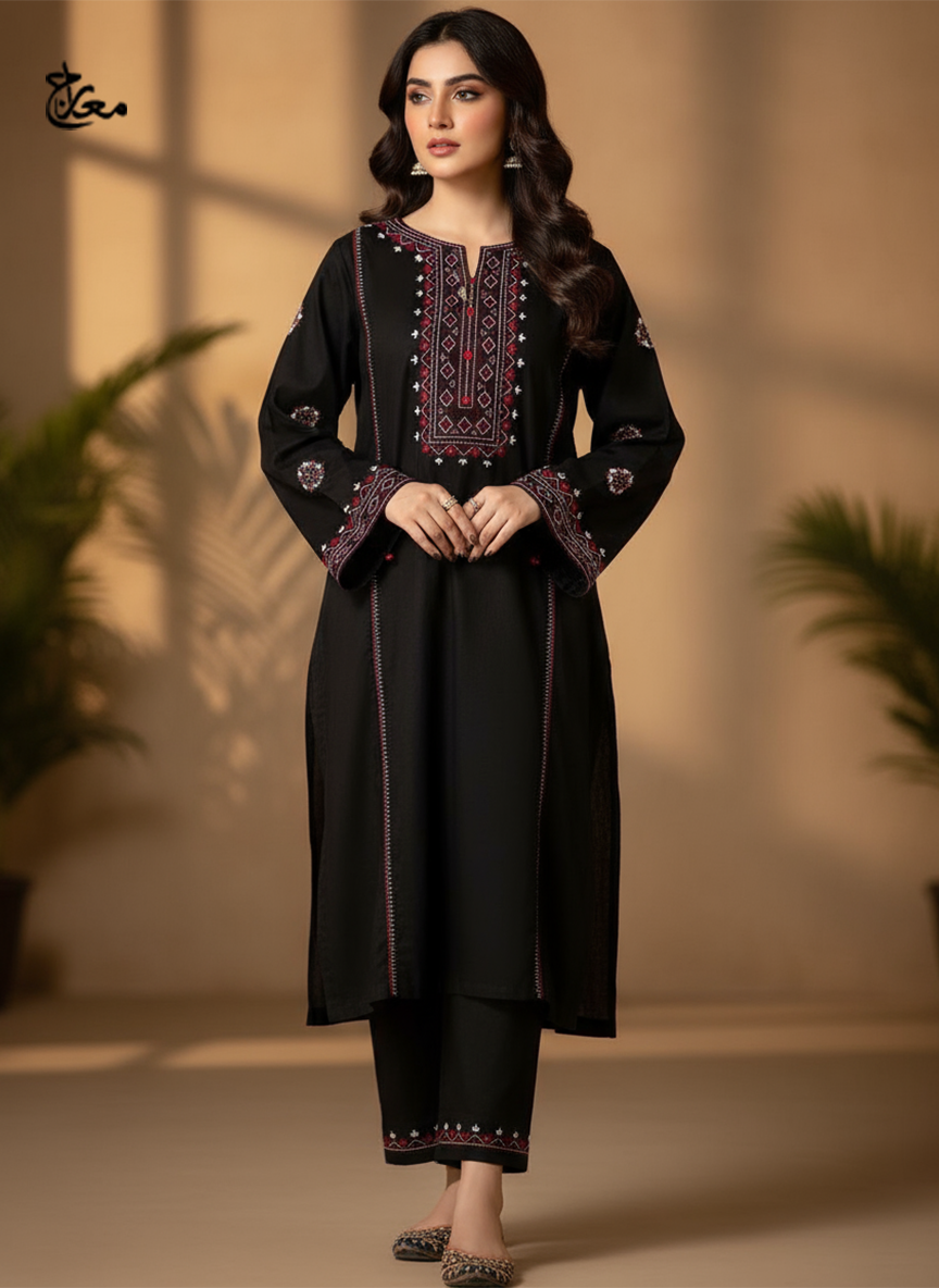 The SINDHI EMB LONG LENGTH is a graceful nod to heritage styling. Crafted from premium lilen embroidery fabric, this two-piece set includes: